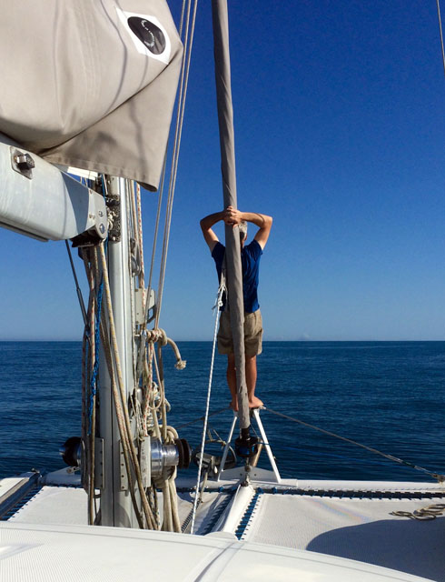 The net result of our failed fishing adventure was: one code zero in the water; one halyard lost halfway up the mast; and two hands with rope burn!
